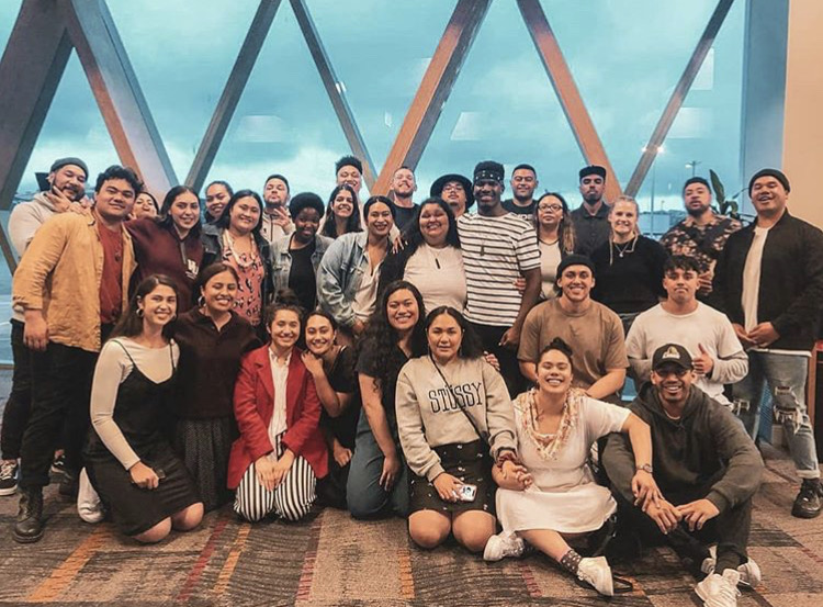 Devin Taylor and his best friend Julia Morales posing with their church family in Wellington, New Zealand