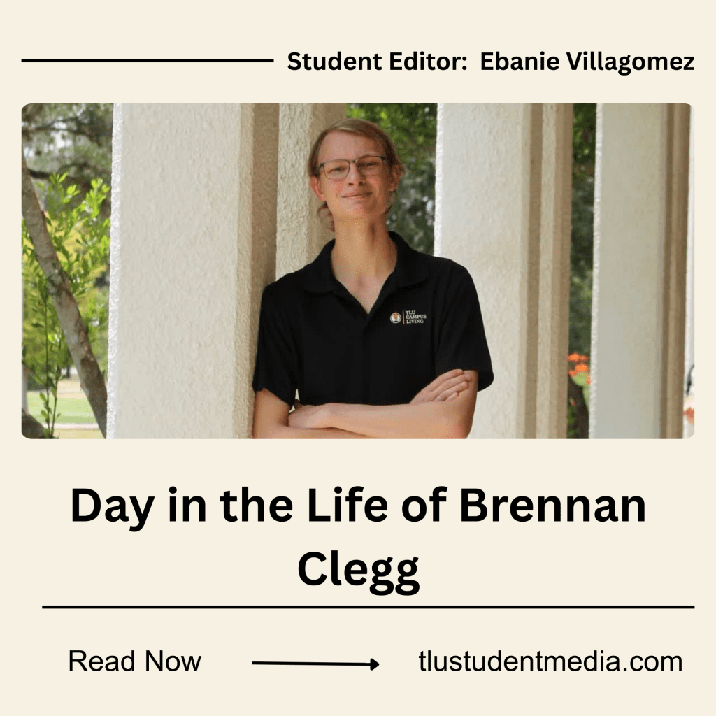 I have always been fascinated with what people do on a daily basis. For me, this stems from growing up in the YouTube generation and being obsessed with watching daily vloggers like Alisha Marie and The Shaytards. What I get out of watching people vlog their lives is the opportunity to discover possible ways to improve my own. I look at it through the lens of: What is a daily action that someone else does that I’m not currently doing but could potentially benefit myself as well? I decided to interview Brennan Clegg, a sophomore here at TLU majoring in Music Education, along with serving as a Resident Assistant to get a glimpse into his daily life.